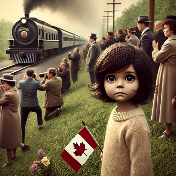 I remember my sister and I hurrying to put on “something nice” because we were going to view a funeral train. On a hillside in Maryland, we stood with others watching the train approach. In my small hands, I held a Canadian flag—my parents had just returned from Canada on vacation, and we had no American flags. As the train passed, a photographer leaned out of the window, a large black camera in hand, and snapped my picture. I was certain I would be on Life magazine.